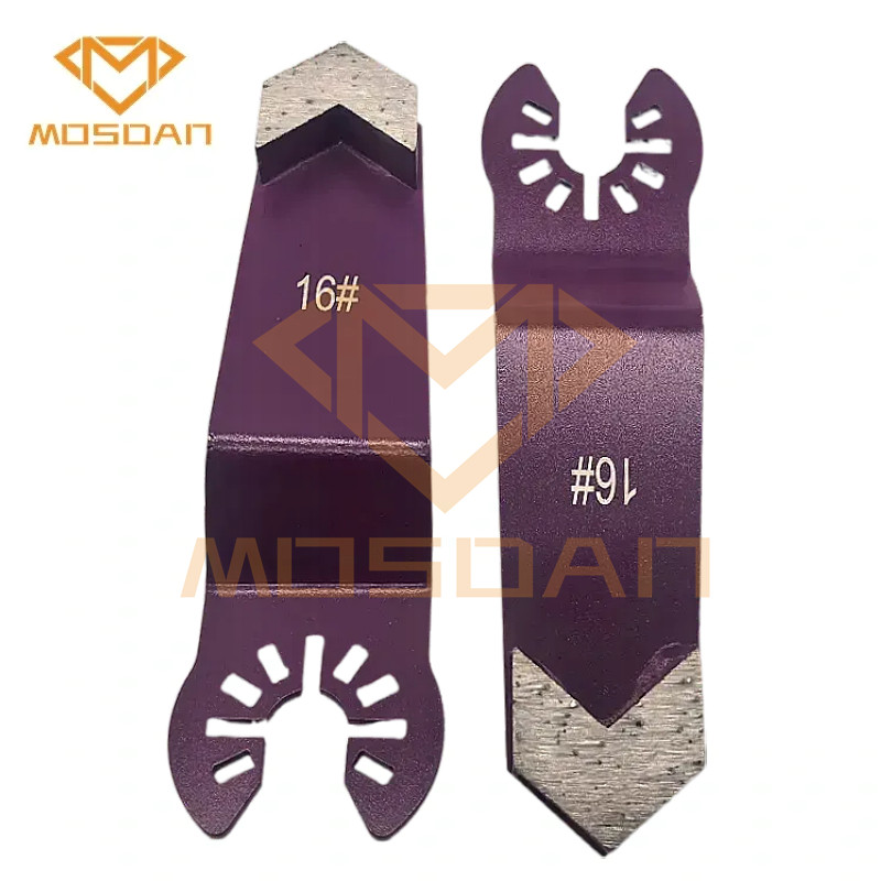Universal Oscillating Multi Tool Arrow Grinding Pads are designed for Concrete floor corner edge grinding. It is more super aggressive and sharp and higher work efficiency than resins. Widely use for concrete, terrazzo, marble, granite etc construction materials. It can be made in super soft bond, extra soft bond, soft bond, medium, hard, extra hard and super hard bond. Grits can be made in 6#, 16#, 18/20#, 30#, 50#, 70#, 100#, 120#, 150#, 200#, 400#